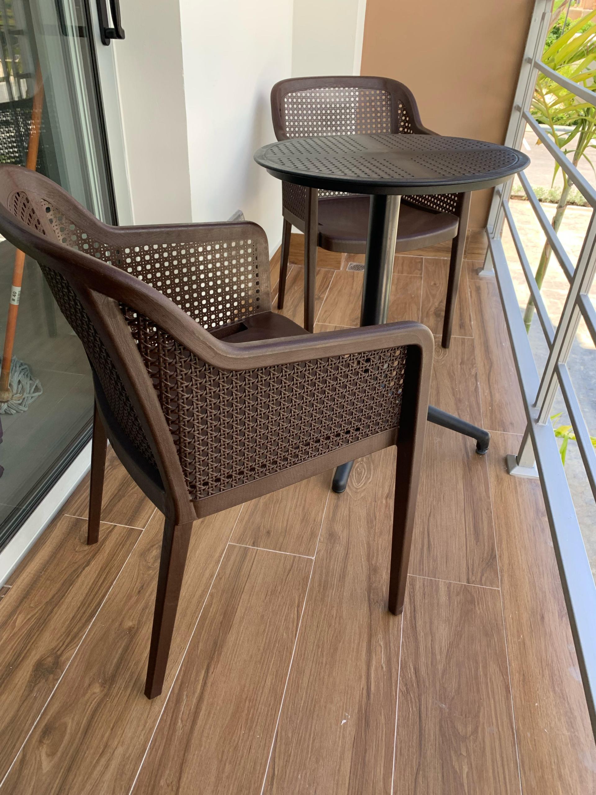 • Exteriores: Cuenta con 2 balcones; el principal está amueblado con una mesa y dos sillas.